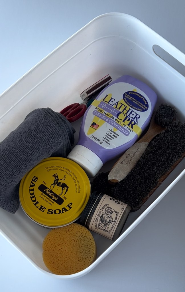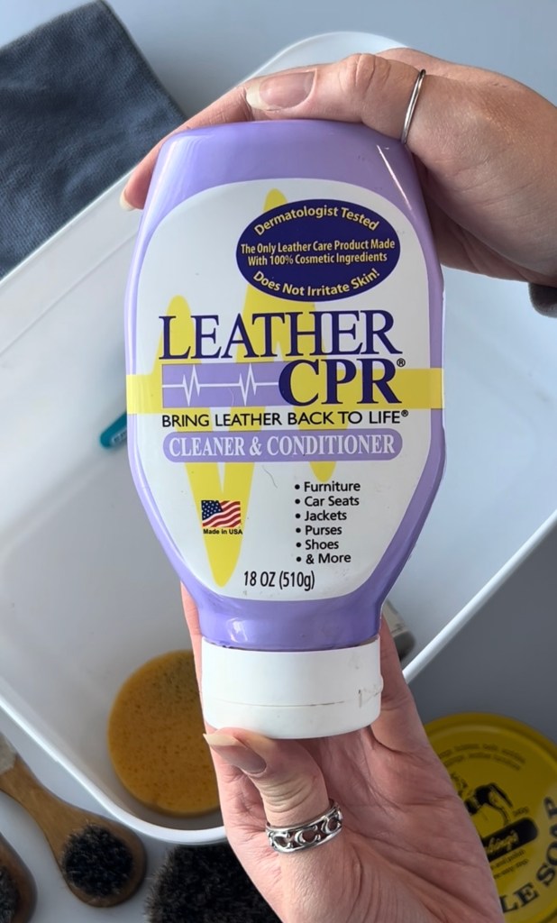 If you can only purchase one product for your restoration, I highly recommend Leather CPR. It’s all-in-one product that can clean and condition your bag. It’s pricey on Amazon. If you have a Tractor Supply near you, pick it up from there!