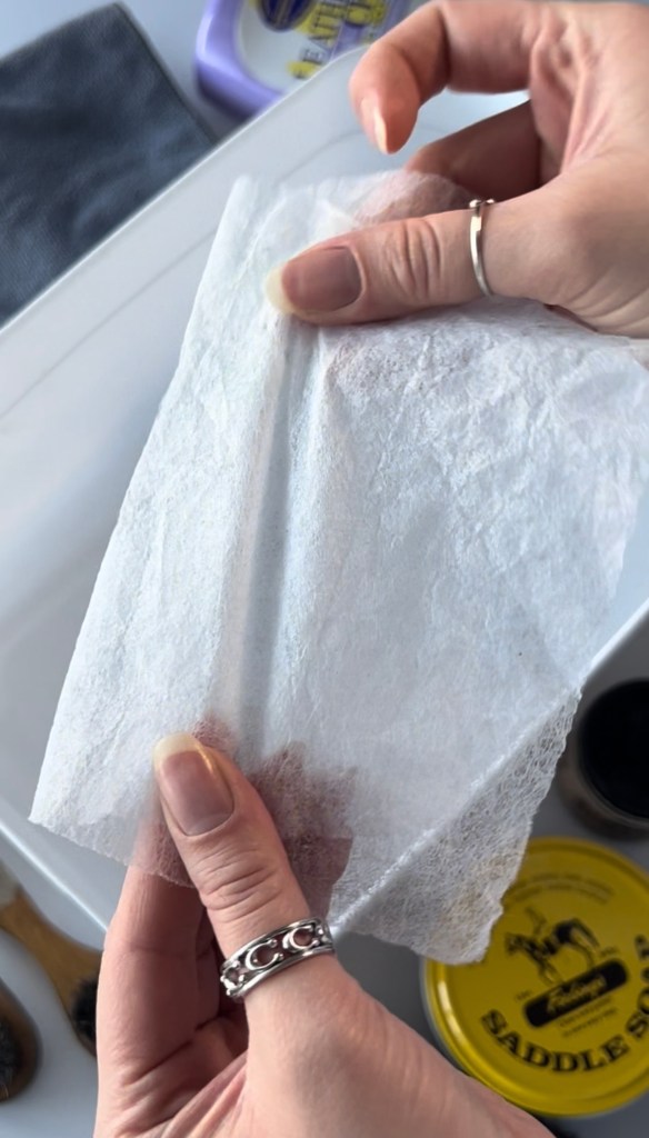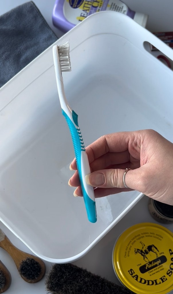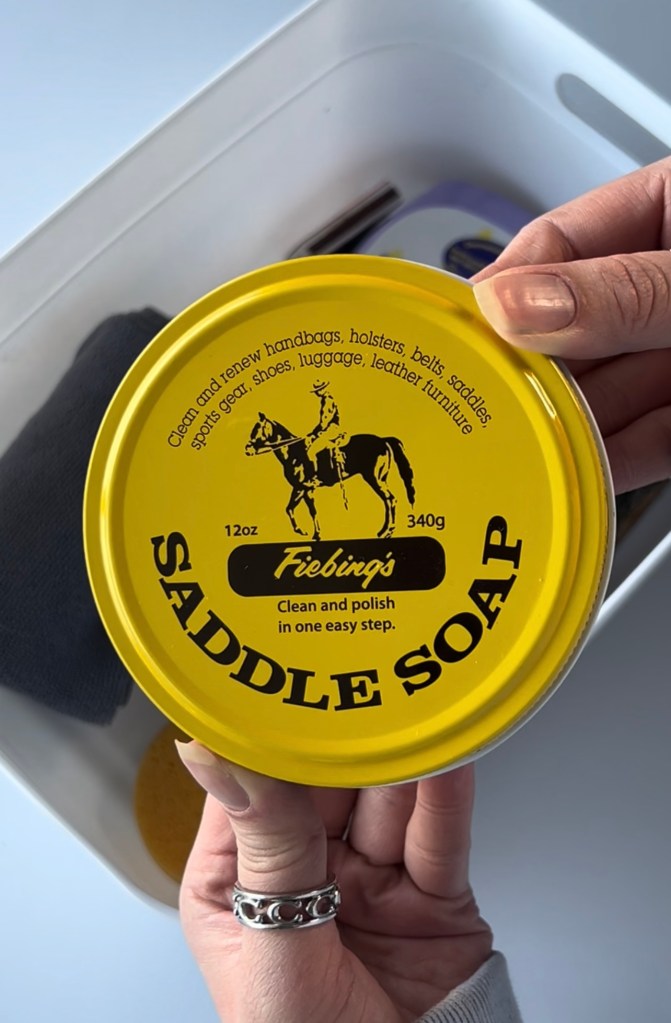 Saddle soap is designed to remove dirt, grime, and old buildup from leather. Use this when your bag is dirty!